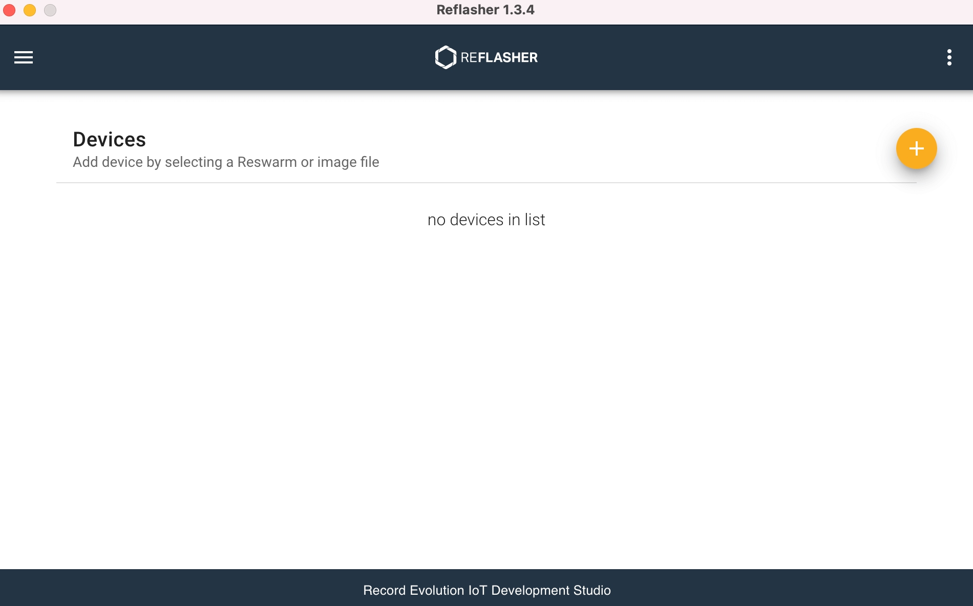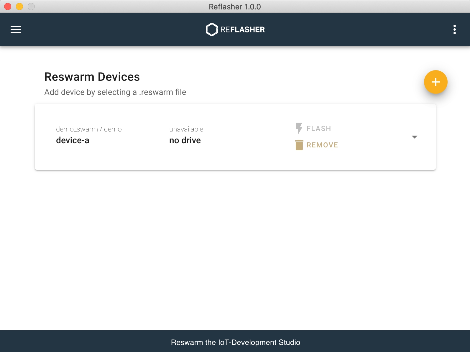 If the browser fails to open the Reflasher for some reason, you will still be able to download the .reswarm file. Any .reswarm file can be imported into the Reflasher by clicking the ADD DEVICE button in the Reflasher app or by double-clicking the file in your preferred file explorer, which launches the Reflasher via file association and automatically imports the device.